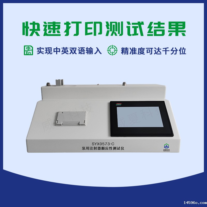 SYX0573-C注射器顺应性测试仪由可编程控制器,触摸屏,力值传感器,传动装置,机载打印机等组成,提供中英文菜单显示,具备人机对话设定各项参数自动运行测试模式。另增设生产单位,生产批次机打输入,使测试结果更加规范化标准化。